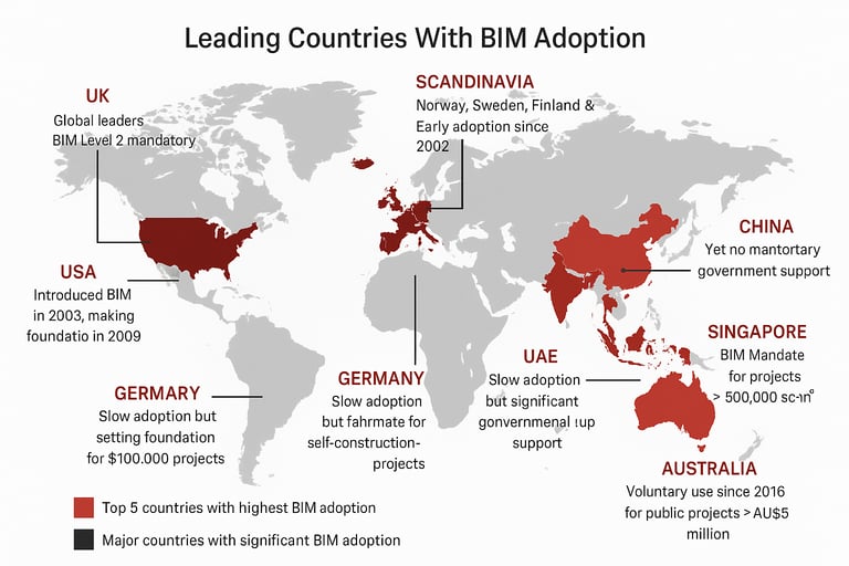 BIM has been adopted in fully developed countries for several years, and they are increasingly outsourcing work to lower labor-cost countries to remain competitive in their markets. Worksharing through cloud-based BIM platforms allows teams from different geographic locations to collaborate effectively.