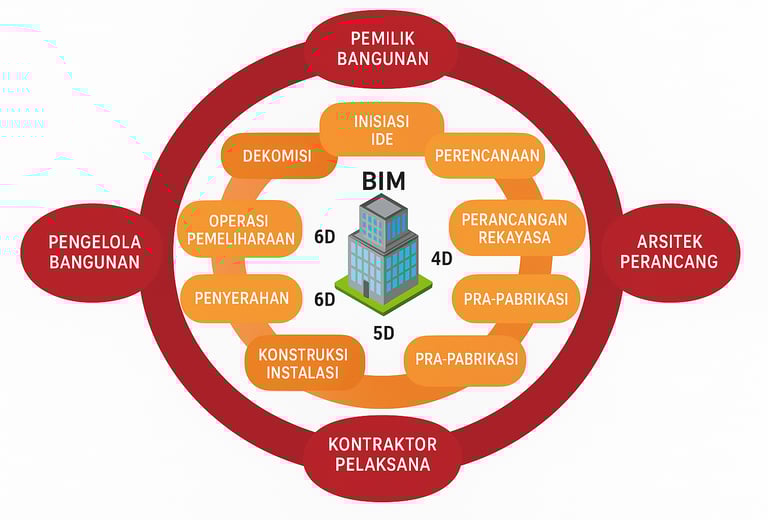 According to regulation PP No. 16 tahun 2021 construction work methods that are required to adopt Building Information Modelling (BIM) are those that are categorized as technology-intensive (Padat Teknologi) and capital-intensive (Padat Modal). According to Permen PUPR No. 22 tahun 2018 regarding Bangunan Gedung Negara (state buildings) Tidak Sederhana (not simple), with criteria of an area exceeding 2,000 square meters and more than 2 floors, mandates the use of BIM.